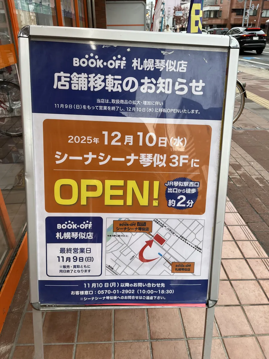 トップ > 🏬行った > 最終営業日なので… かいとるぶるる 2025/11/09 12:23 最終営業日なので… 日曜日、曇りと青空が見える中僕は琴似のブックオフに行ってきました!なんでもシーナシーナ琴似店に移転オープンするというので今日が営業終了するのでした! 店内は特にセールとかやってなかったけどいつも通り営業してましたっシーナシーナのオープン記念期間限定イベントの広告はそこらじゅうにありましたっ 最後だから何買おうかなーって見てたらアニメ映画のBlu-ray見つけたのでそれを買いました! 来月の移転オープンするスーパーバザーシーナシーナ琴似店でいっぱい買い物するぞー!!! 札幌琴似店 営業終了 店舗移転 最後のお買い物 いいね 共有する 共有する X facebook LINE リンクをコピー コメントする 3 件の返信 (新着順) ミュートしたユーザーの投稿です。 投稿を表示 ジン 2025/11/10 06:35 店舗移転なんですね 行きやすくなるのか行きづらくなるのか… いいね 返信する ミュートしたユーザーの投稿です。 投稿を表示 まっくろくろすけ 2025/11/09 21:29 閉店!と思ったら移転なんですね! それもスーパーバザーに✨ 来月の移転オープン、楽しみですね😊 いいね 返信する ミュートしたユーザーの投稿です。 投稿を表示 大神 2025/11/09 21:11 移転でよかったです😅 新しい場所でまた楽しく買い物できますように😉 いいね 返信する