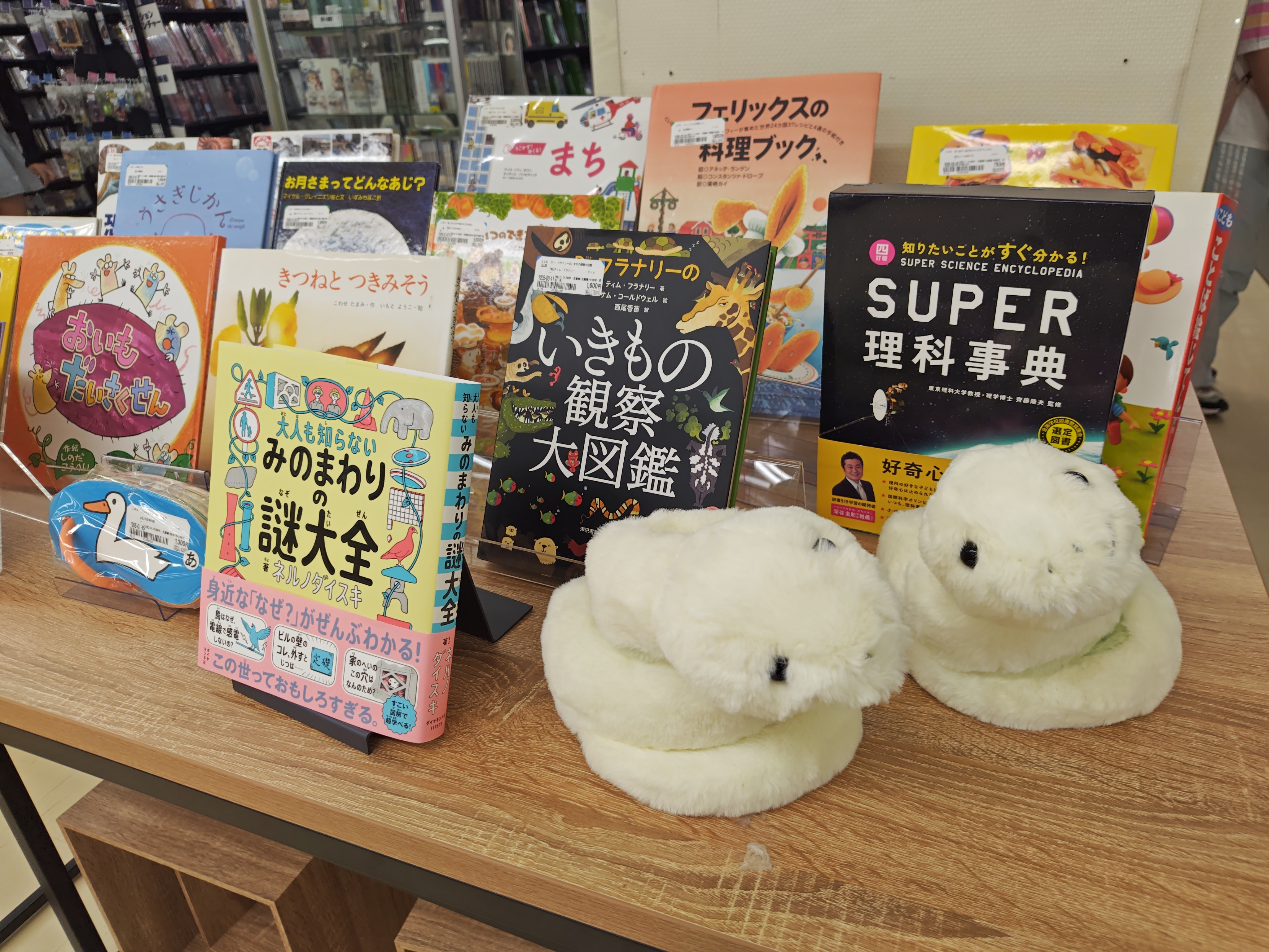 トップ > 👀見つけた > シロヘビちゃんズ、見つけた。 いもてて 2025/09/27 16:15 シロヘビちゃんズ、見つけた。 名古屋の栄スカイル店に行きました。 スキ天投稿にて何度か登場している、レジ前のお子様向け本紹介コーナーの守り神「シロヘビちゃんズ」、本日も確認しました。 お値段ついていないから、非売品ですね🍀 栄スカイル店では、よむよむ君ぬいぐるみを発見したことはないので、毎回、シロヘビちゃんを確認しています。 いいね 共有する 共有する X facebook LINE リンクをコピー コメントする 2 件の返信 (新着順) ミュートしたユーザーの投稿です。 投稿を表示 ジン 2025/09/28 10:18 すぐに生き物観察できますね いいね 返信する ミュートしたユーザーの投稿です。 投稿を表示 いもてて 2025/09/28 16:40 ジン すぐ隣にある「いきもの観察大図鑑」は、シロヘビちゃんズのためにある感じですね🍀 でも、気になって、一番前にある「みのまわりの謎大全」を見てしまいました。 いいね 返信する ミュートしたユーザーの投稿です。 投稿を表示 まっくろくろすけ 2025/09/27 23:26 シロヘビちゃんズ! 私も先日、確認しました😊 なんともいえない雰囲気がかわいいですよね 2匹いるのがまたいいです😊 いいね 返信する ミュートしたユーザーの投稿です。 投稿を表示 いもてて 2025/09/28 09:13 まっくろくろすけ レジ前にいるので、待っている時に目にとまりますよね✨ そうなんです、二匹いるのがまた、かわいい💕 いいね 返信する