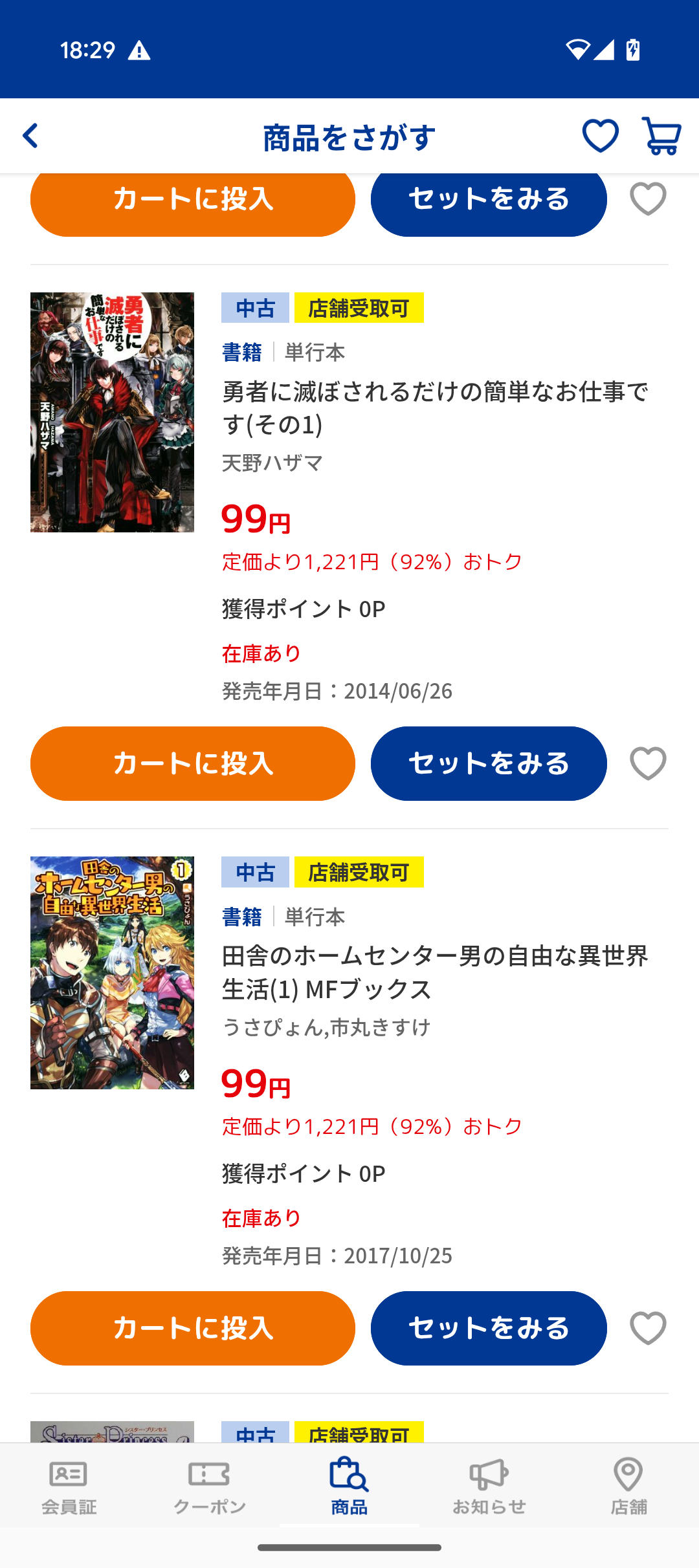 トップ > 👀見つけた > 99円…?! ジン 2025/09/30 18:36 99円…?! 99円商品なんてBOOKOFFオンラインストアにあったんですか?! ちょっと気になる…一冊買ってみるか いいね 共有する 共有する X facebook LINE リンクをコピー コメントする 3 件の返信 (新着順) ミュートしたユーザーの投稿です。 投稿を表示 まる 2025/10/18 18:20 あれっ、99円なんてあったんですね〜😳初めて見ました! いいね 返信する ミュートしたユーザーの投稿です。 投稿を表示 ジン 2025/10/18 19:20 まる 自分も最近知りました いいね 返信する ミュートしたユーザーの投稿です。 投稿を表示 まっくろくろすけ 2025/09/30 22:40 99円商品ははじめて見ました 110円よりもだいぶお値打ちに感じます😊 いいね 返信する ミュートしたユーザーの投稿です。 投稿を表示 ジン 2025/10/01 05:51 まっくろくろすけ 自分も初めて見ました いいね 返信する ミュートしたユーザーの投稿です。 投稿を表示 いもてて 2025/09/30 21:05 99円は、見かけないお値段設定ですね!! 110円が最安値だと思っていました! いいね 返信する ミュートしたユーザーの投稿です。 投稿を表示 ジン 2025/09/30 21:39 いもてて 初めて見てびっくりしました いいね 返信する