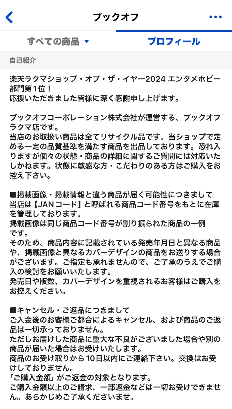 しかも【楽天ラクマショップ・オブ・ザ・イヤー2024 エンタメホビー部門第1位!】との記載が!知らなかったけどかなりしっかり営業されているみたい。