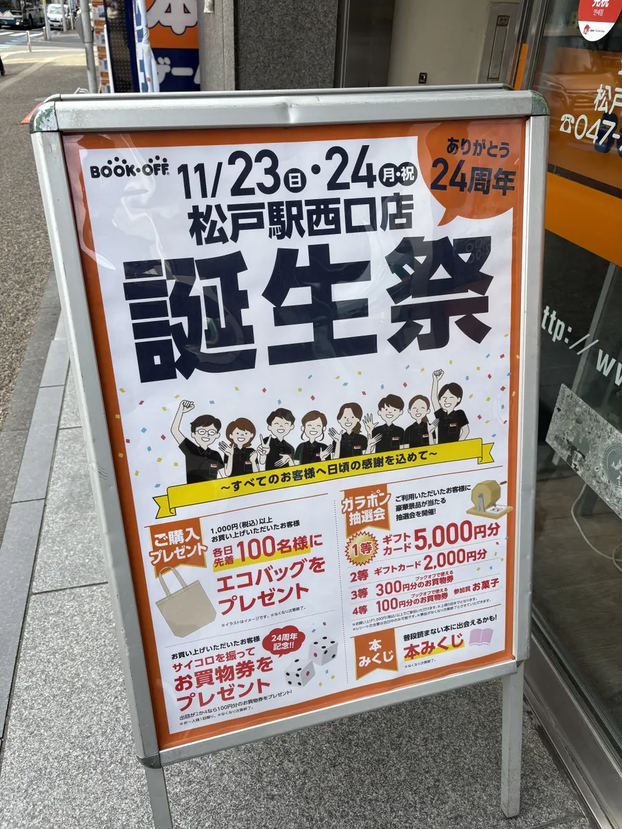トップ > 🏬行った > 松戸駅西口店 マヨ 2025/11/11 20:44 松戸駅西口店 11月9日 ブックオフ松戸駅西口店です! ここの店舗は過去に2回ほど来たことがあり、お気に入りの店舗です! 漫画の110円コーナーが充実いていた記憶があります。 この店舗では何故かラノベをよく買うので今回もラノベを購入しました 面白そうなタイトルなので買ってみました アニメもやってますよね 11月23日、24日には誕生祭も開催するようです。 お近くの方は是非! いいね 共有する 共有する X facebook LINE リンクをコピー コメントする 1 件の返信 (新着順) ミュートしたユーザーの投稿です。 投稿を表示 大神 2025/11/11 21:18 実は8月辺りに行こうと思って結局実現しなかったので、年内か年明けには行ってみたいと思ってます! 楽しみです😁👍 いいね 返信する ミュートしたユーザーの投稿です。 投稿を表示 マヨ 2025/11/12 08:16 大神 漫画がとても充実している楽しい店舗ですよ! 是非行って頂きたい店舗です♪ いいね 返信する