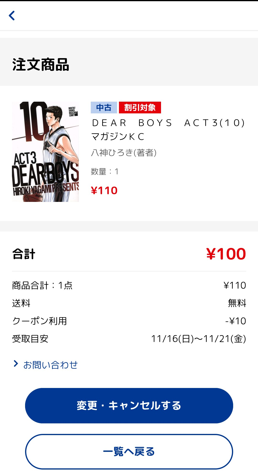 トップ > 👜買った > 迷った結果 大神 2025/11/12 21:18 迷った結果 こちらもコンプリート目指してるのでDearBOYS ACT3にしました。 後半の一部を除き、ほとんど110から165円で買えるので集めやすくて助かります✌️ ブックオフオンライン いいね 共有する 共有する X facebook LINE リンクをコピー コメントする 1 件の返信 (新着順) ミュートしたユーザーの投稿です。 投稿を表示 いもてて 2025/11/13 08:38 110円商品のクーポン利用は、価値高いですよね! 在庫も比較的安定&最終巻付近以外は安く買えるタイトル、私も最近よく集めています! わりとすぐ集まるし、価格も安いで、集める楽しみがハンパないです! いいね 返信する ミュートしたユーザーの投稿です。 投稿を表示 大神 2025/11/13 12:45 いもてて ワンコインで買えて更に集めやすいので助かってます☺️ 全巻集めて読むのが楽しみで仕方ないです! いいね 返信する