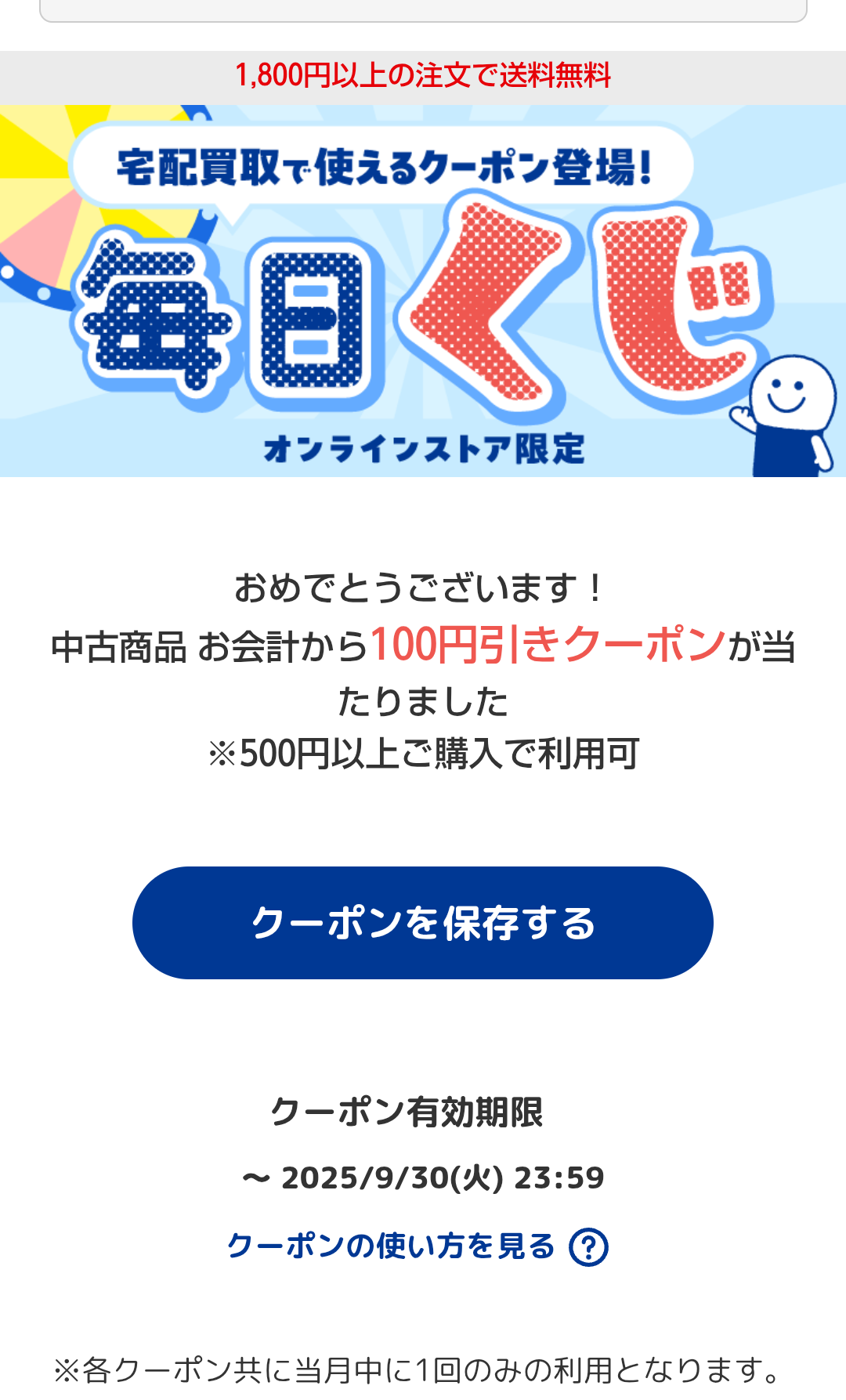 トップ > 💛なんでも > 月の初めは毎日くじ 大神 2025/09/01 12:47 月の初めは毎日くじ 今月は最初は100円引きからスタートです😁✨ 早速欲しい本が入荷したら使いたいと思います👍 ブックオフオンライン いいね 共有する 共有する X facebook LINE リンクをコピー コメントする 1 件の返信 (新着順) ミュートしたユーザーの投稿です。 投稿を表示 ジン 2025/09/01 12:52 月のはじめはどんどん当たりますね! いいね 返信する ミュートしたユーザーの投稿です。 投稿を表示 大神 2025/09/01 12:57 ジン いいスタートがきれました☺️ いいね 返信する