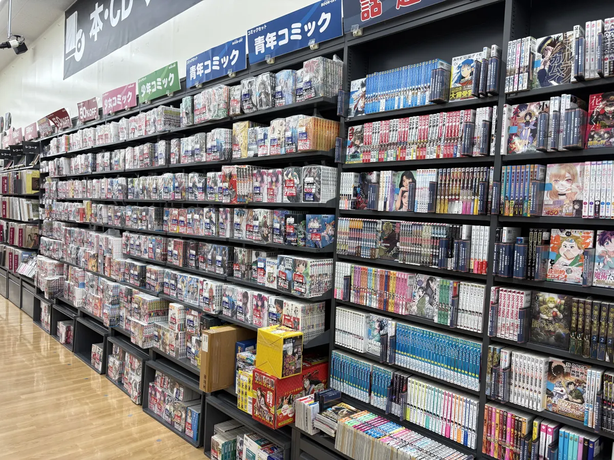 遠くから見ると普通のセットコミックコーナーって感じですが、よーく見るとほとんどが50%オフのシールが貼られています。