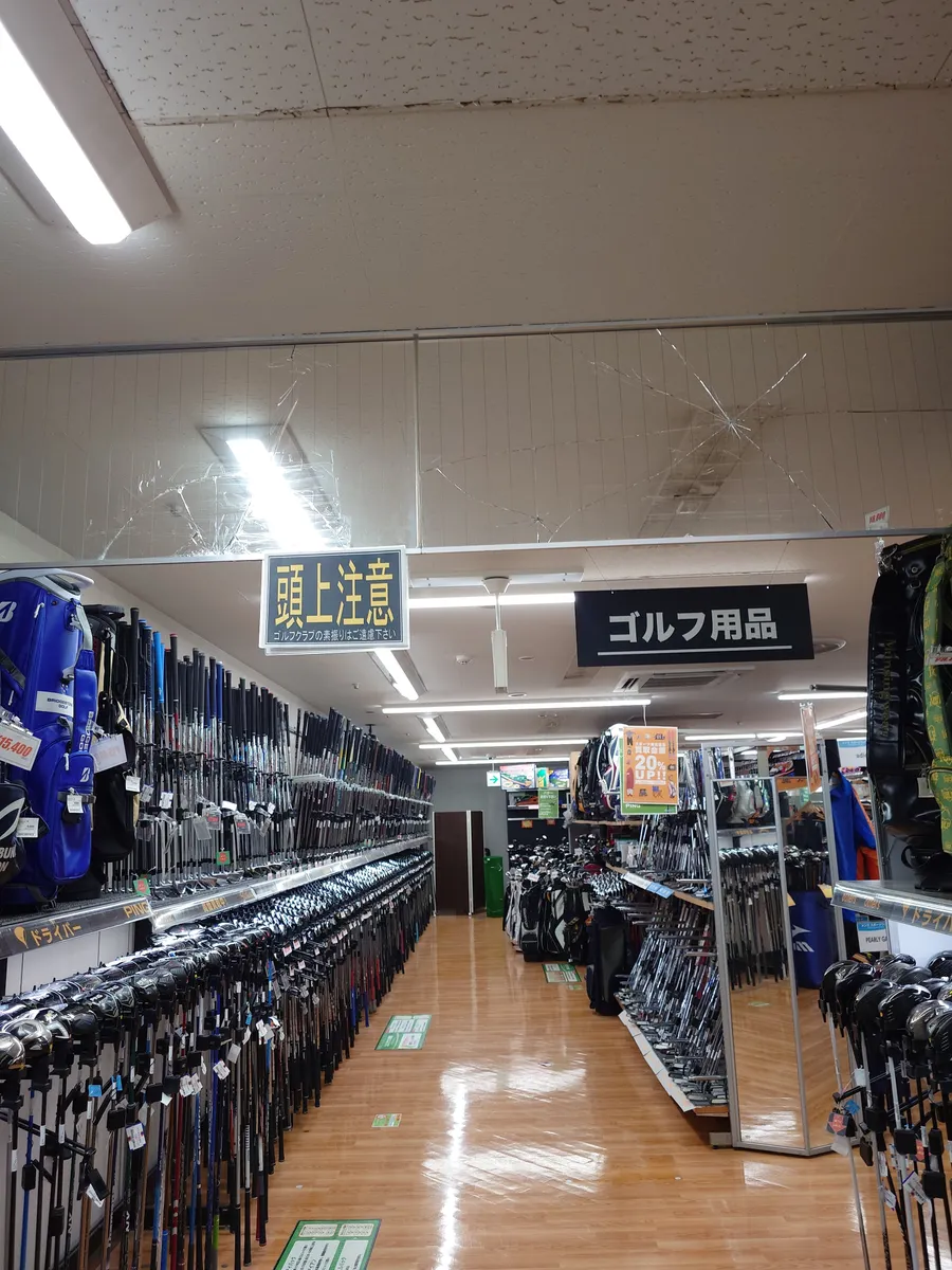 ゴルフコーナーを歩いていると頭上注意!の掲示物がありました。そもそもそれが頭に当たりそうな位置にあったので何でやねん!と思いつつ見ると