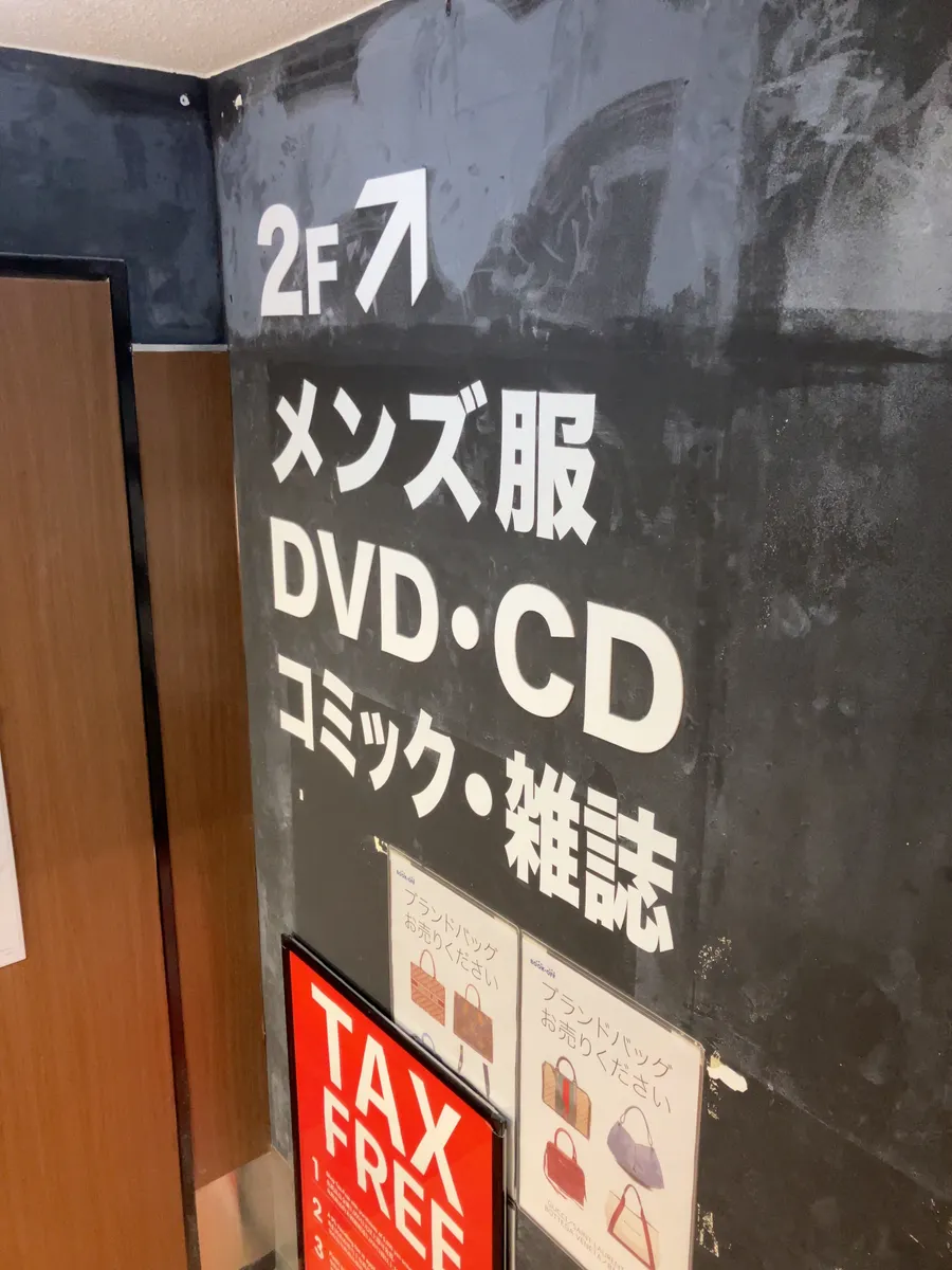 2階の取扱商品は、メンズ服・DVD・CD・コミック・雑誌でした。アパレルがメンズ限定というのは、なかなか珍しいですね。