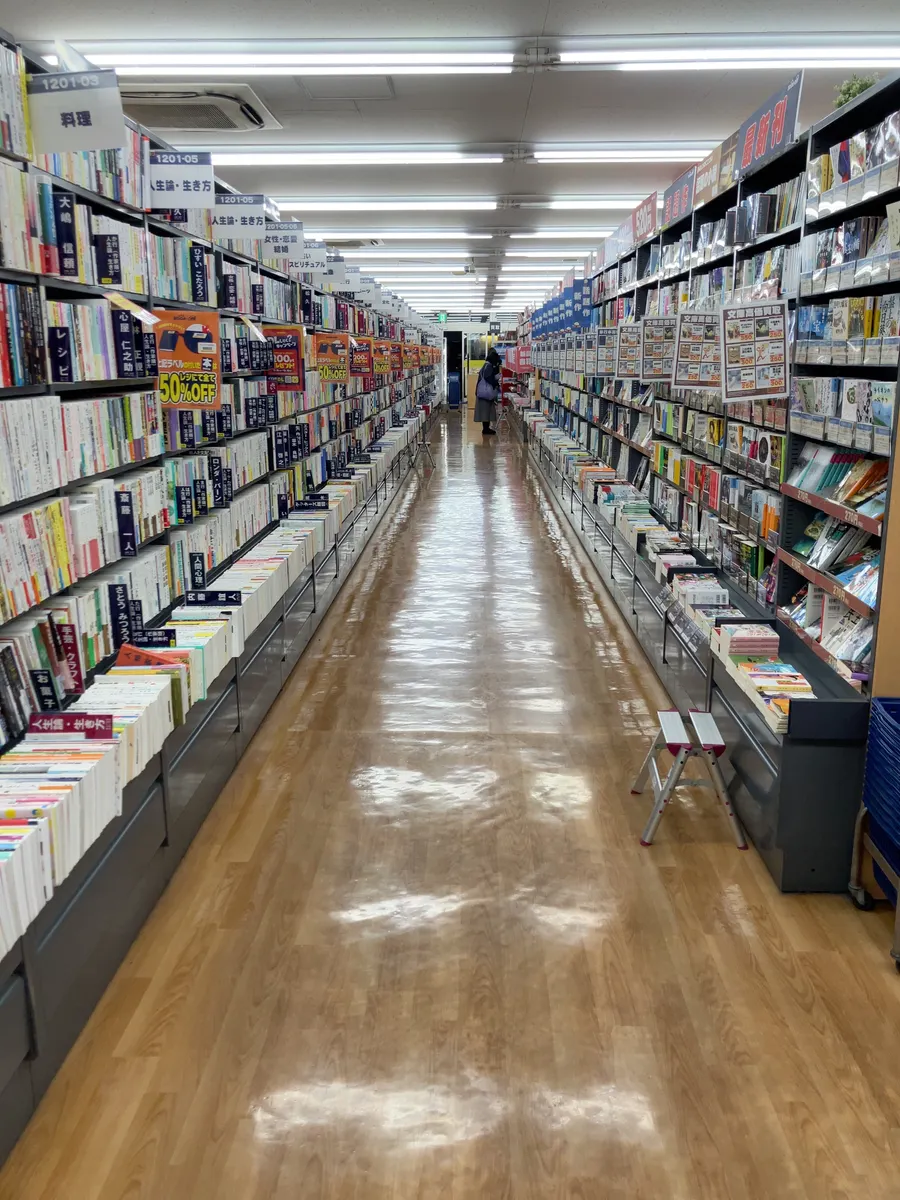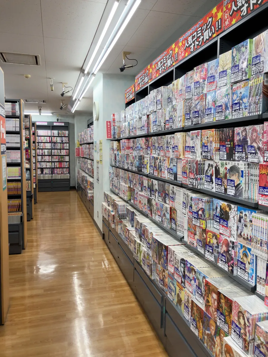 奥行きがあり、かなり広々としたお店でした。階段を降りた先にあるコミックコーナーは、かなりの人気ぶり。上の階が駐車場になっているので、車でも電車でもアクセスしやすいのが魅力ですね。