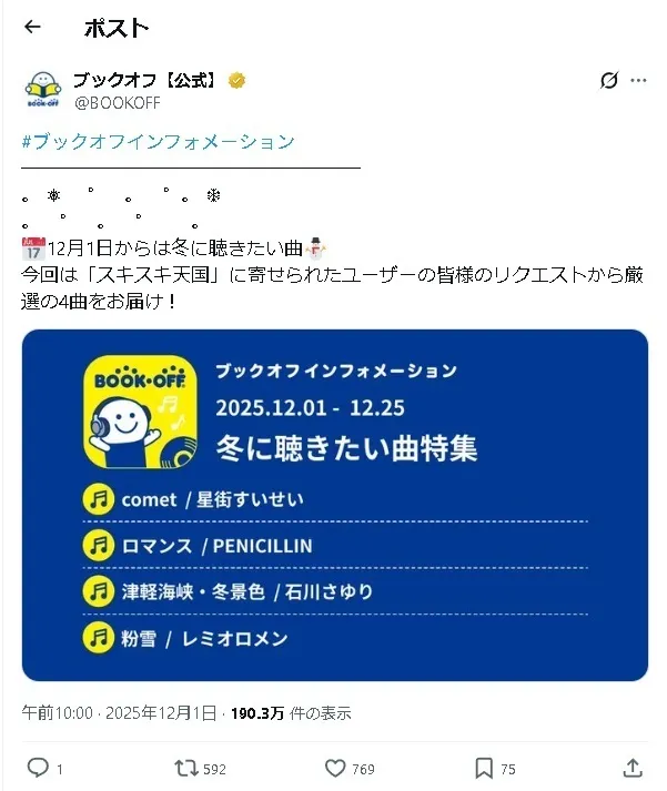 リンク:https://x.com/BOOKOFF/status/1995296790388621689?s=20