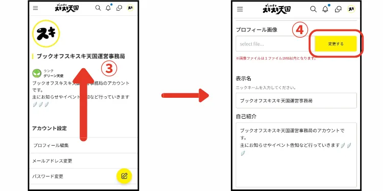 3. プロフィール画像の「変更する」を押して画像を選択