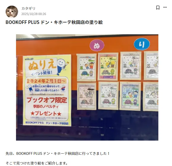 カタギリさんの「BOOKOFF PLUS ドン・キホーテ秋田店の塗り絵」です!