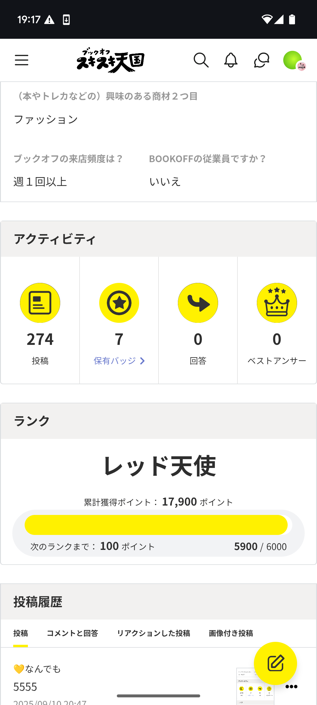 投稿を表示おーっ!もうランクアップが目の前ですね!