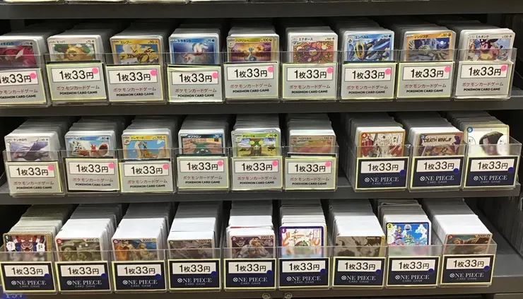 ポケカは赤色、デュエマは赤色、ワンピースは青色のシールが目印です。