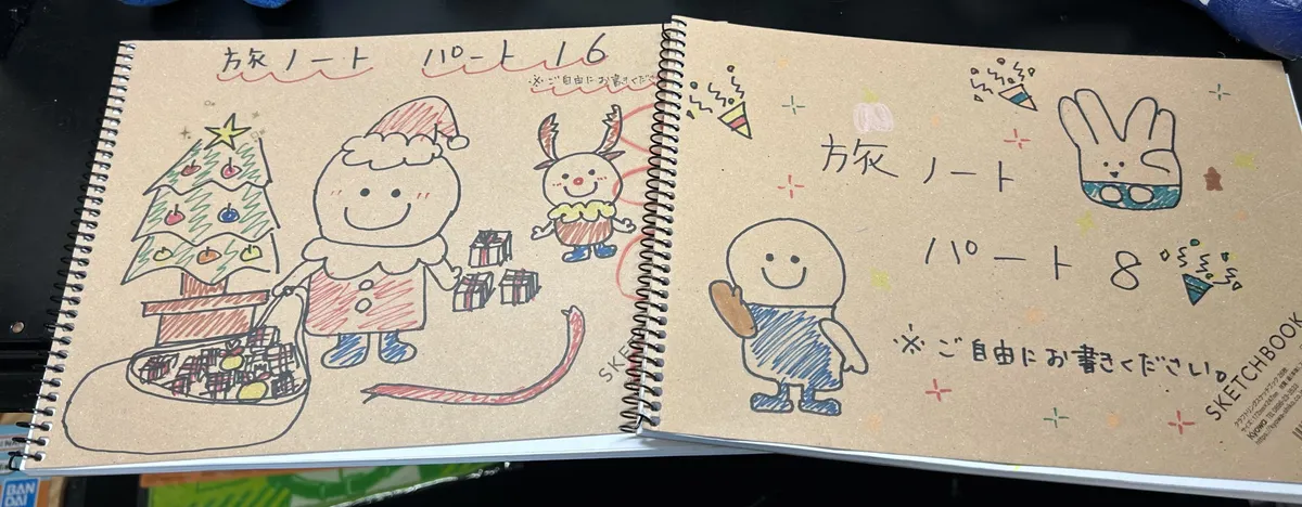 投稿を表示この旅ノート、本当に可愛いですね😍✨✨一冊一冊デザインが異なるのが良いです。「表紙イラストを描いて行ってね!」と呼びかけているよむよむ君も素敵です。内容の関係で販売できないのかもしれませんが、気になります。側に居るオカザえもんとドアラのインパクトにも目が離せません🤭