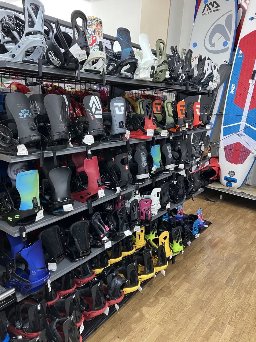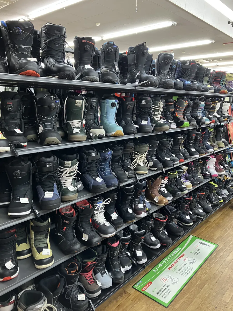 当店、スノーボード、ブーツ、ビンディング、スノーボードウェア、さまざまなメーカー、モデル、サイズを取り揃えおります👍