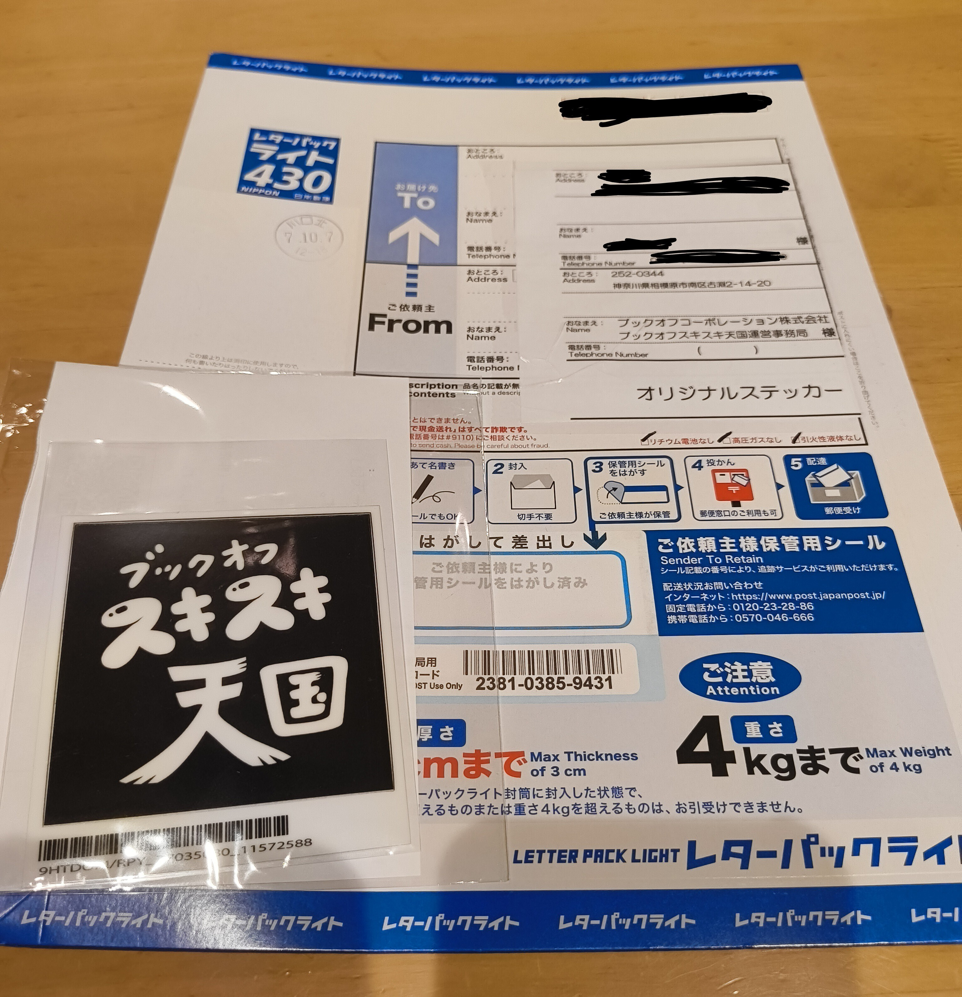 到着のはやさとレターパック、驚きでした!