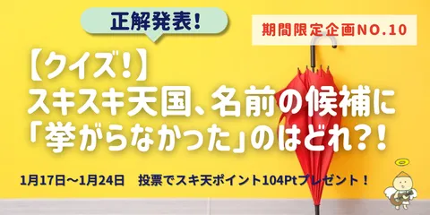 【正解発表!】スキスキ天国、名前の候補に「挙がらなかった」のはどれ?!