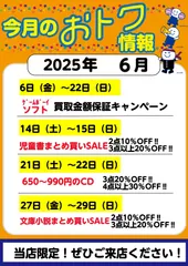 セール情報 ブックオフスーパーバザー14号千葉幕張店🌈千葉幕張店セール情報🌈 6月のセール情報一覧です♬お買い得なせーるとなっておりますので、ぜひご来店ください!