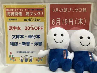 大好評『朝ブック!』 第一、第三木曜日10:00〜12:00文庫、新書、単行、雑誌、児童書が20%オフのタイムセールを開催!