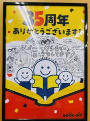 素敵なイラスト 名古屋平針店(本・ソフト館)で見つけた35周年ポスターですイラストがプロレベルで見とれてしまいました!みなさんの投稿を見ても、ブックオフの店員さんはイラストが上手な方が多いなぁと思います😊