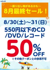 今週末のセール情報! 🌟セール情報🌟 8/30(土)〜31(日) 550円以下のCD・DVD・レコードが半額 欲しかったCDやDVD・レコードをお得に買うチャンス! また、31日限定で110円以下の雑貨も半額! 掘り出し物があるかも? 今週末水戸姫子店でお待ち