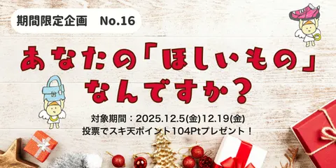 \コメント大募集/あなたの「ほしいもの」なんですか? 天使みなさまいらっしゃいませこんにちは( ^ω^)・・・天の声6号です。今日、餃子を作ったのですが、包む皮をジャンボサイズにしたら、包む回数が減ってマンモスうれぴかったです。いよいよ12月!ホリデーシーズン到来ということで、12月前半のお題は、、\あなたの「ほしいもの」なんですか?/です!募集期間: