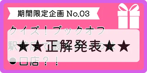 ★★正解発表★★>8月もクイズです!BOOKOFF〇〇駅●口店で最も多いのは?!