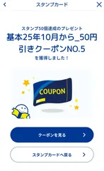 年内ラストのスタンプクーポン おそらく最後になるだろうスタンプクーポンは50円引きでした。 20%オフの日か110円の本辺りで使えたらいいなと思います。