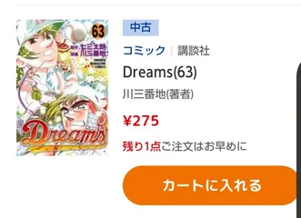 油断したぁ! dreams61巻を買った時点では62〜64巻がある事を確認していたのですが…そろそろまとめ買いしようとしたら63巻だけ店舗受取不可に😭 再入荷を待って購入します🥲
