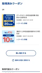 ブックカバークーポンをゲットしました! 今月はまだ10円引きクーポンしか当たっていないのでありがたいです😁 110円か220円の本にでも使おうかな🤔