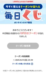 今月の1回目のくじは… 50円引きでした。金額に制限がついてから少し使用する機会は減っちゃったかな😅ちょうどいい金額の買い物があれば使いたいです!