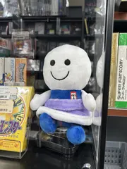 名古屋市の北、愛知県尾張地方に位置する岩倉市にあるBOOKOFF岩倉大地店さんのよむよむ君 レジ横にスタッフさんの手編みの帽子をかぶった子がいますが、もうひとり、レトロゲームコーナーにもかわいい子がいます😊(お店の外には名古屋弁のよむよむ君も…よむよむ君があふれています✨) 紫の