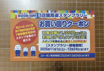 お買い回りクーポン 日曜日に行った京都伏見店でいただきました守口ジャガータウン店307号枚方池之宮店1号京都伏見店3店舗周遊スタンプラリーを開催中だそうです😊 スタンプをもらうのに1000円の購入が必要ですが、スタンプ1つで110円引きスタンプ2つで220円引きラリー達成で1,000円引き! 3,0
