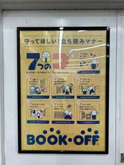 楽しく立ち読みするための合言葉「7つのブ」のポスター、初めて見ましたよむよむ君ファミリーがかわいいです😊「文鳥も我慢すること」🤭