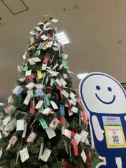 【川崎港町店】🎄クリスマスイベント🎄開催中です! エレベーター側、店内入り口に2mを超えるクリスマスツリーが登場🎄✨ みんなの願いがサンタさんに届くかも・・・🎅❤️お願いごとを書いてツリーに飾ろう🎄 そして、楽しいイベント✨小学生以下のお子様にご参加いただける『よむよむ