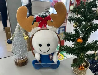 クリスマス仕様よむよむくん トナカイのツノのサイズ感が合ってないですが、カワイイです🎉レジ前にいますので可愛がってやってください🦆