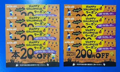 HAPPY HALLOWEEN クーポン🎃 岐阜オーキッドパーク店にて700円以上で200円引きクーポンを使って770円分の本を570円で購入し、HAPPY HALLOWEENクーポンとレシートクーポンをダブルでいただきました😊ハロウィンクーポンはデザインもかわいい✨クーポンありがたいです!