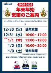 12/31~1/2の営業時間が通常と異なりますのでご注意くださいませ。年末年始も皆様のご来店心よりお待ちしております!!!