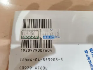 珍しい値札 よく見かけるのはこの2種類ですが、私の知っている限り、ブックオフではもう1種類値札があります。ブックオフオンラインで、何か特典等がある場合に貼られる値札だと思ってましたが、特典等なくても貼られている場合もあるようです。(コメントで教えて頂きました。)