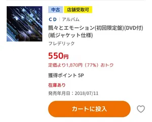 公式サイトを見ていると、気になる作品が芋づる式に増えてゆきます……。検索をかけながら、何をお迎えするかをじっくり考えています。実店舗に立ち寄る予定があるので、購入品が被らないよう気を付けなければ。 一度は手放したKANA-BOONの「ダイバー」が格安で売られていて衝